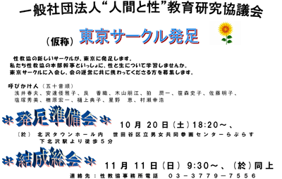 - 性教協の地方サークルの一つとして、いよいよ東京サークルが発足します。